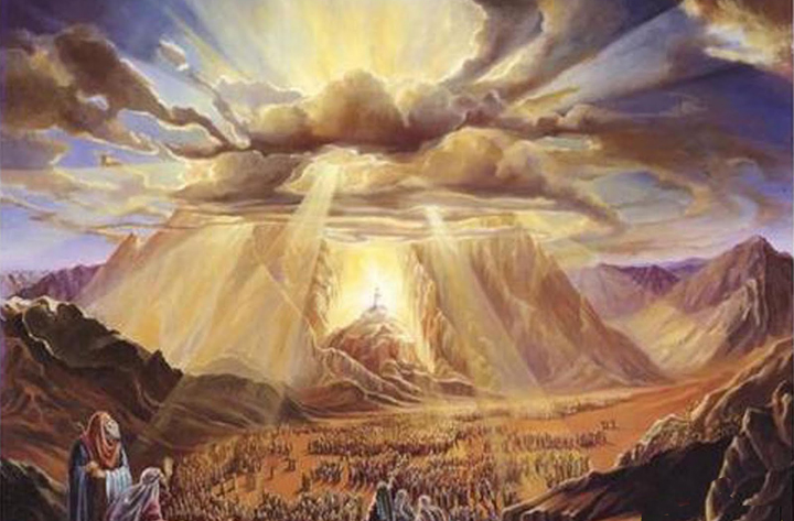 Скитаясь по пустыне вслед за Духом Божиим, воплотившемся в огненном столпе (колонне), израильтяне, спустя семь недель после Исхода подошли к горе Синай. У подошвы этой горы (отождествляемой большинством исследователей с горой Сас-Сафсафех, а другими с Сербалом) при грозных явлениях природы заключён был окончательный Завет (договор), между Богом и евреями как избранным народом, предназначенным отныне быть носителем истинной религии и нравственности.
