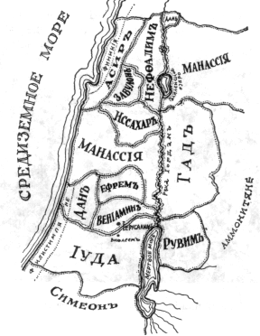 При помощи Божией Иисус Навин в шесть лет завоевал всю землю обетованную и разделил ее по жребию между двенадцатью коленами народа еврейского (израильского).
