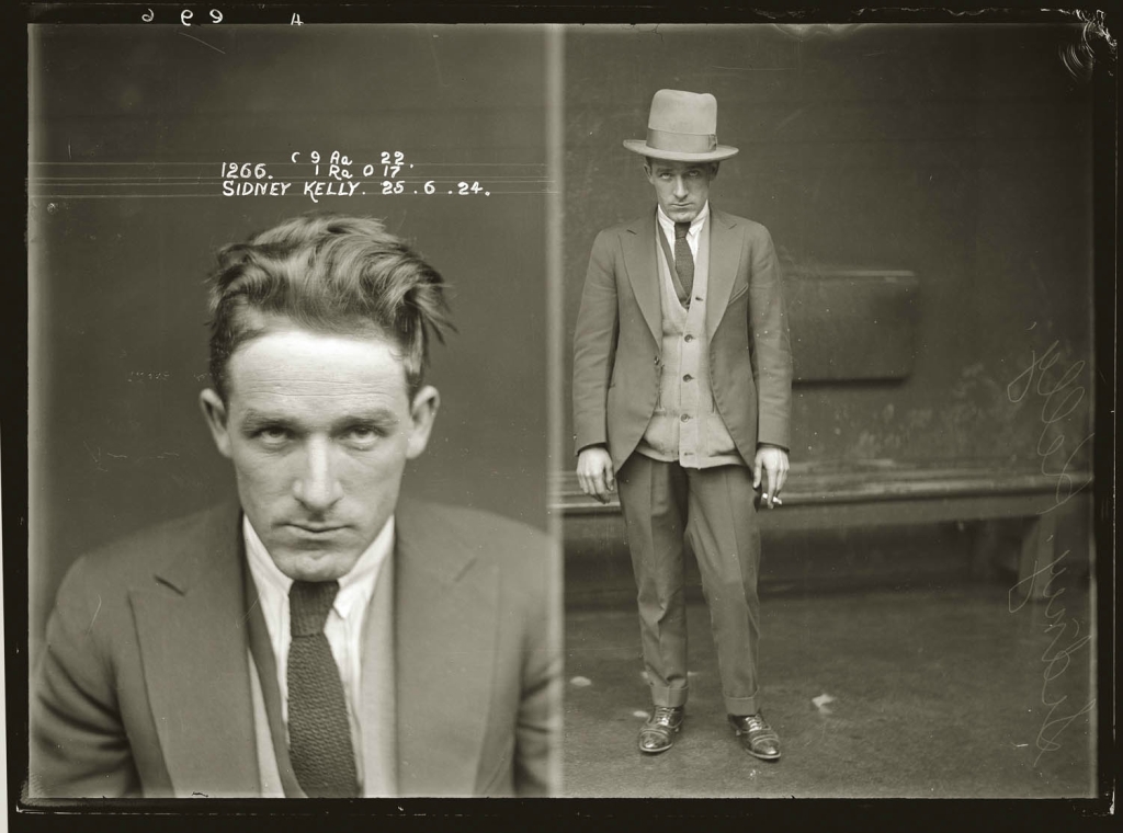 Подробности, связанные с этим особенности фотографии неизвестны, но Сидни Келли был арестован много раз. О нем много писали в газетах в 1920-х, 30-х и 40-х годов. Он был обвинен в многочисленных преступлениях, включая стрельбу и нападение, и в 1940 году был пионером незаконных игровых баккара в Сиднее. Продавец наркотиков. Работал в сговоре с преступниками и проститутками.