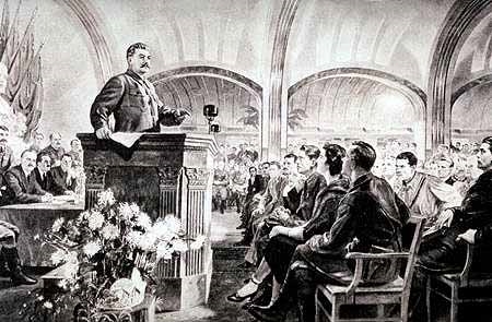 И. В. Сталин выступает перед комсомольцами на станции Маяковская 6 ноября 1941 года, за день до знаменитого парада