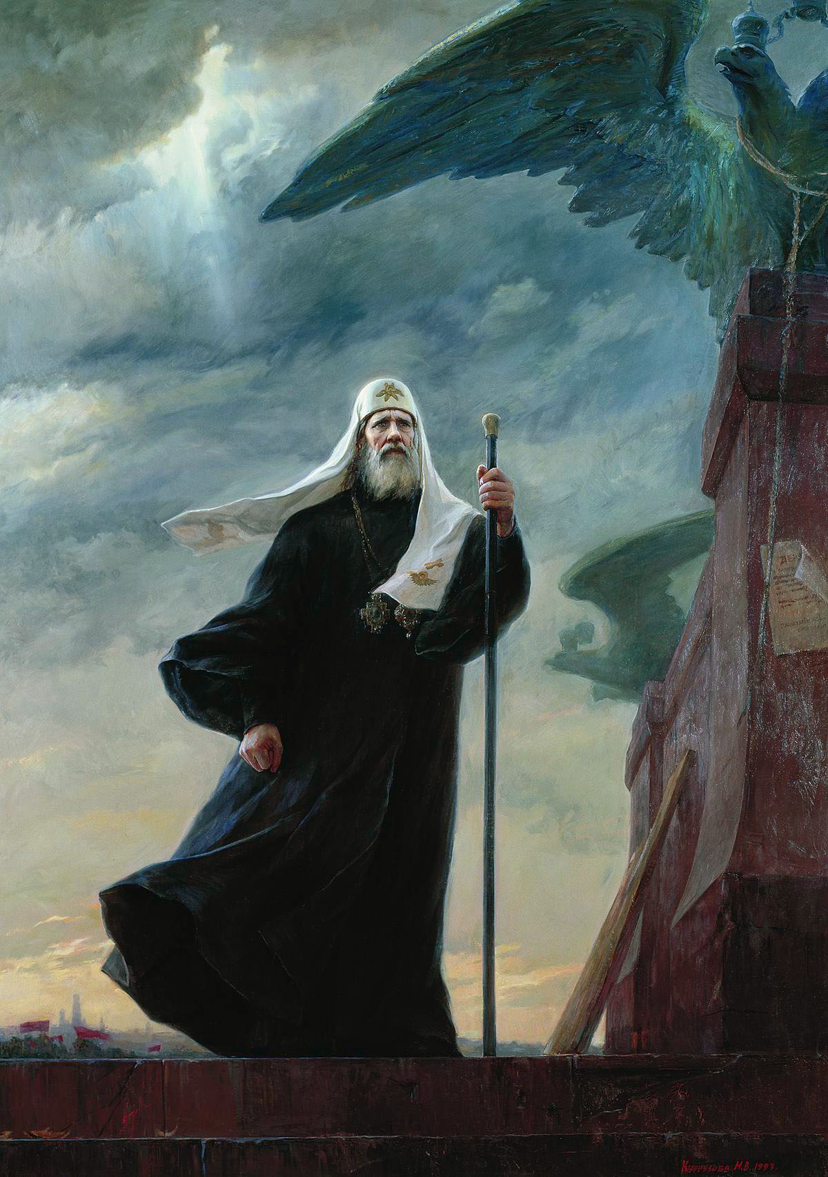 Депутация Поместного Собора уговаривает Патриарха бежать, он решительно отвергает это предложение.