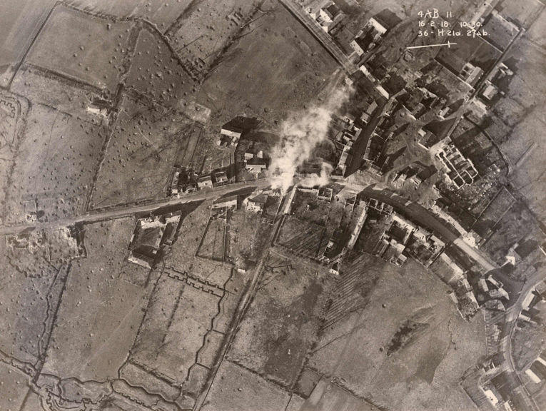 19. Последствия бомбардировок на Западном фронте. Снимок сделан с британского самолета, 16 февраля 1918 года.