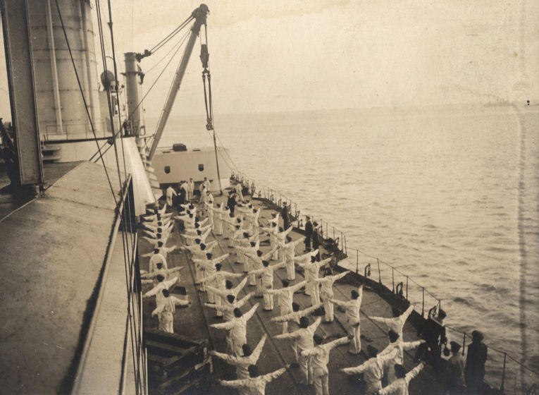 6. Утренняя зарядка на немецком корабле, 1917 год.