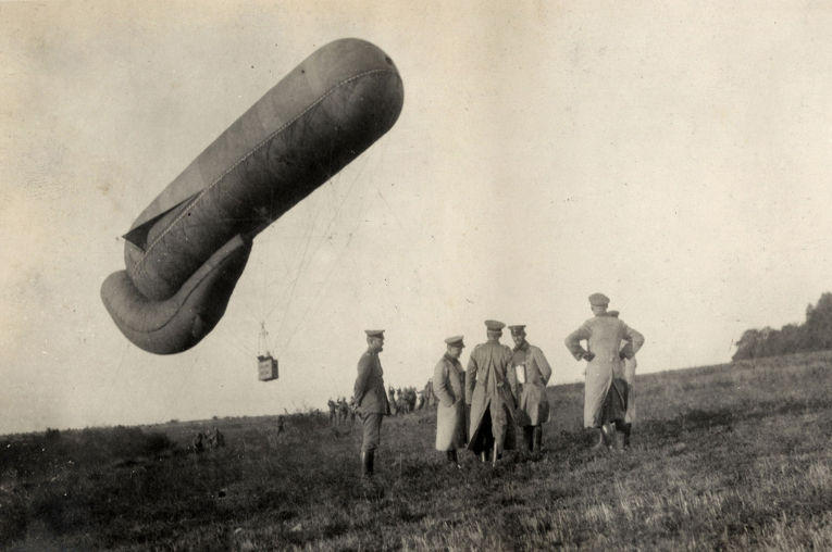 7. Немецкие офицеры у аэростата наблюдения рядом с Западным фронтом, 1915 год.
