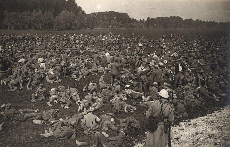 8. Немецкие военнопленные на поле в Лонжо, Западный фронт, 1 августа 1916 года.