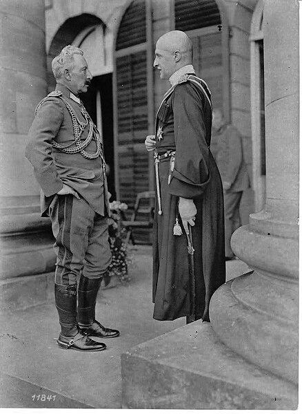 Император Германской Империи Вильгельм II (слева) и Гетман Скоропадский на встрече в Ставке Верховного командования в Спа в августе 1918 года