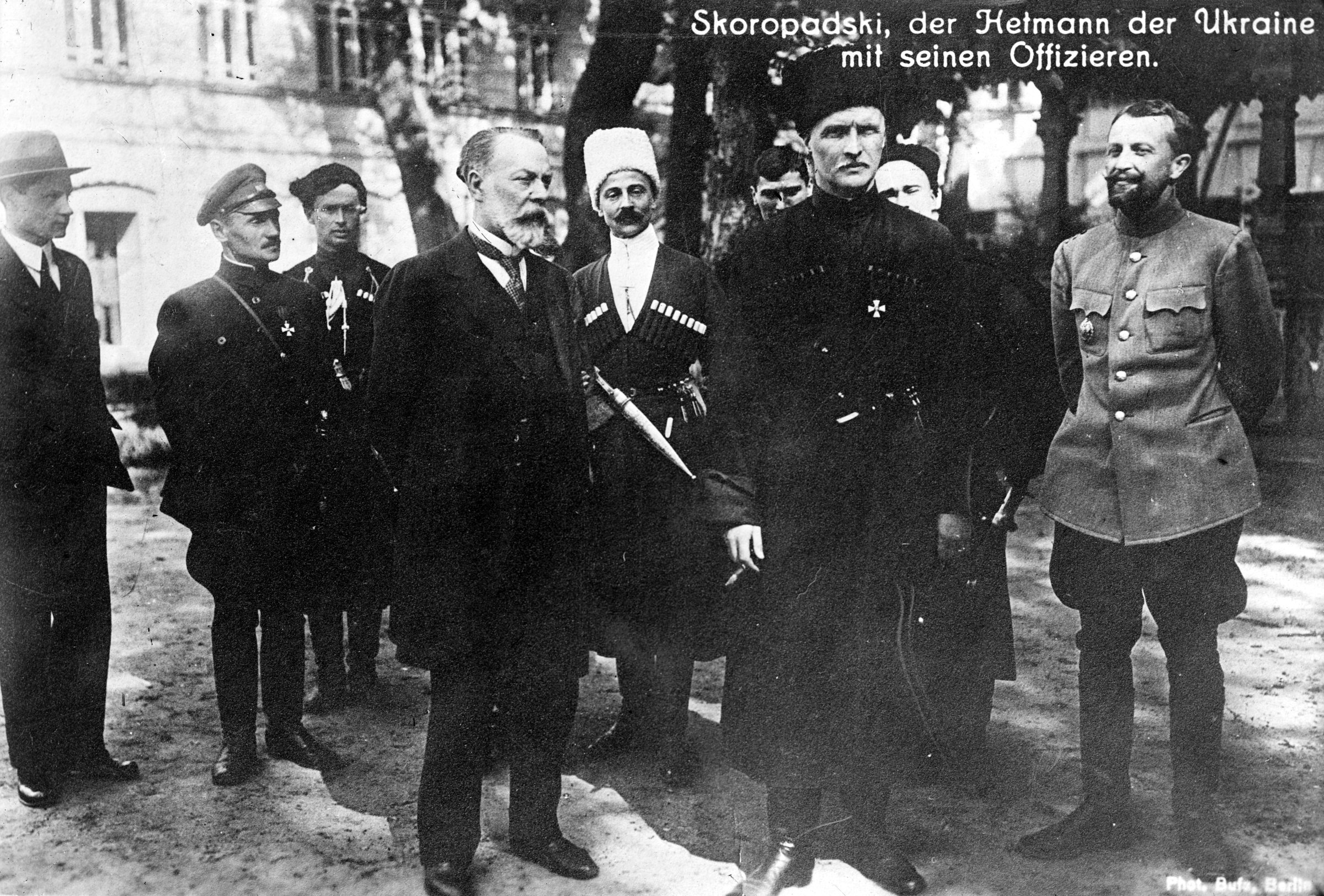 Павел Скоропадский (на переднем плане справа) и немцы.