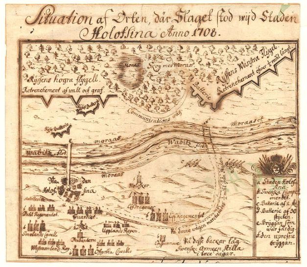 В октябре 1708 года Петру I стало известно об измене и переходе на сторону Карла XII гетмана Малороссии Мазепы, который вёл с королём длительные переговоры, обещая ему, в случае прибытия на Украину, до 50 тысяч казацкого войска, продовольствие и удобную зимовку[6]. 28 октября 1708 года Мазепа во главе отряда казаков прибыл в ставку Карла.