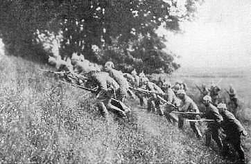 Германские позиции оборудовались здесь в течение 2 лет и представляли собой высокий образец использования техники и военно-инженерного искусства. Колючая проволока, бетон, безопасные помещения для гарнизона, скрытая фланговая оборона пулеметами, деревни и леса, обращенные в своего рода маленькие крепости, — таков в общем характер укрепленных позиций германцев, которых они имели 2 полосы в 2-3 км одна от другой и начали строить 3-ю.