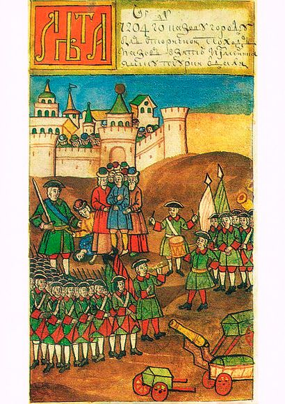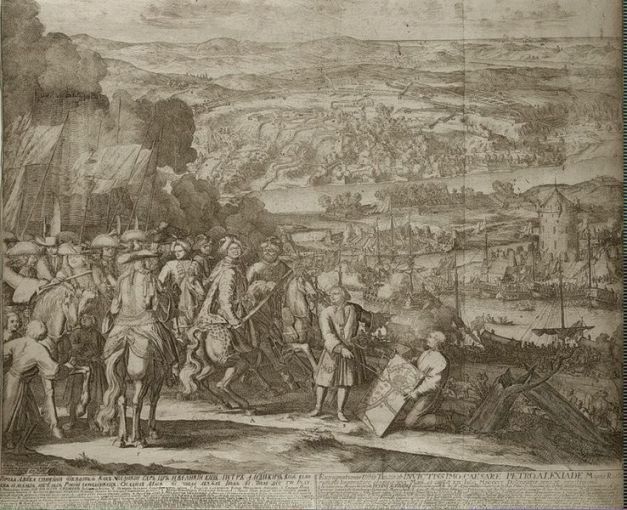 По занятии Азова с моря к нему приблизились суда русского флота. Став в два ряда под крепостными стенами, они дали троекратный залп, который знаменовал торжество победы русских. Этому залпу вторили ответные троекратные залпы русской армии, находившейся на суше.
