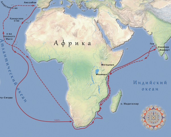После открытия испанскими экспедициями Колумба «Западной Индии» португальцам нужно было спешить, чтобы закрепить за собой «права» на Восточную Индию. В 1497 г. была снаряжена эскадра для разведки морского пути из Португалии — вокруг Африки — в Индию. Подозрительные португальские короли остерегались прославленных мореплавателей. Поэтому начальником новой экспедиции стал не Бартоломеу Диаш, а молодой, ничем ранее себя не проявивший придворный знатного происхождения Васко да Гама, на которого пал выбор короля Мануэла I.