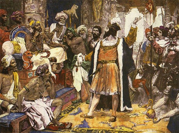Увидев индийскую землю, лоцман отошел подальше от опасного берега и повернул на юг. Через три дня показался высокий мыс, вероятно гора Дели (у 12° с. ш.). К вечеру 20 мая 1498 г. португальские суда, продвинувшись к югу около 100 км, остановились на рейде против г. Каликут (ныне Кожикоде).