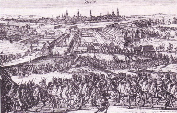 В пути Хадик, сознавая ничтожность своих сил, приказывал на привалах раскладывать больше костров, чем требовалось, с тем, чтобы создать ложное впечатление о величине своего отряда. Это было напрасным трудом, так как военный комендант Берлина, генерал Рохов, несомненно осведомлённый о приближении австрийского отряда, не потрудился произвести разведки. Единственная принятая им мера предосторожности состояла, а в том, что были удвоены караулы на воротах: в дополнение к внутренним были установлены наружные посты за воротами.