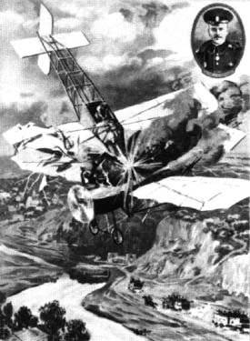 Плакат «Подвиг штабс-капитана .26 августа (8 сентября) 1914 года пал в бою, совершив первый в мире воздушный таран легендарный русский летчик Петр Николаевич Нестеров. В день похорон Нестерова около ста тысяч киевлян провожали своего любимца в последний путь. Никольский собор не мог вместить желающих, когда отпевали героя.