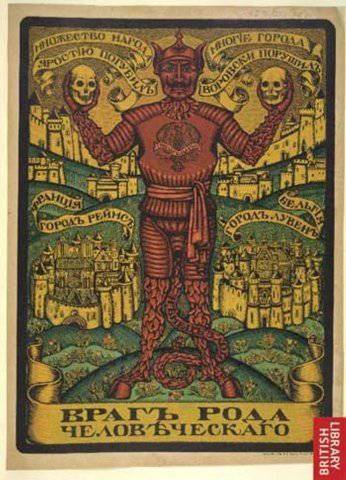 Кайзер Вильгельм, развязавший мировую войну- враг рода человеческого. Именно таким образом его и изображали на дореволюционных плакатах: