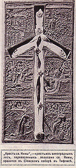Государь Император изволил прикладываться к иконе Сионской Божьей Матери и к кресту из виноградных лоз, перевязанных волосами св. Нины.