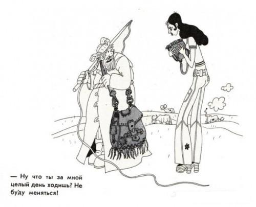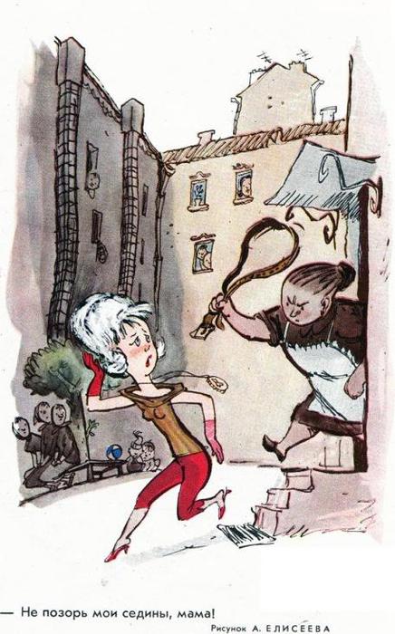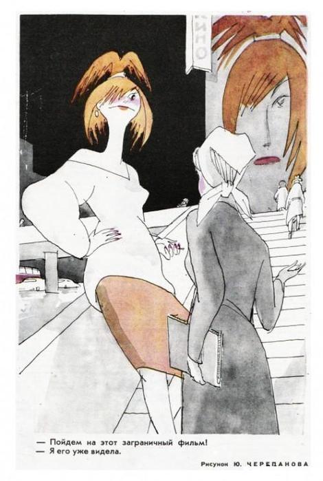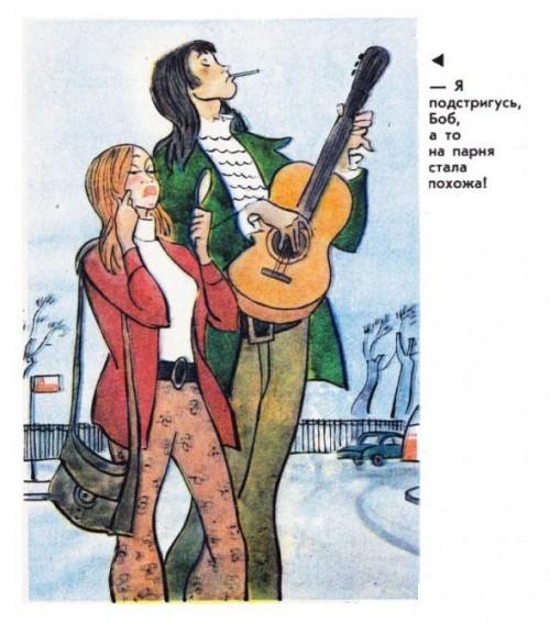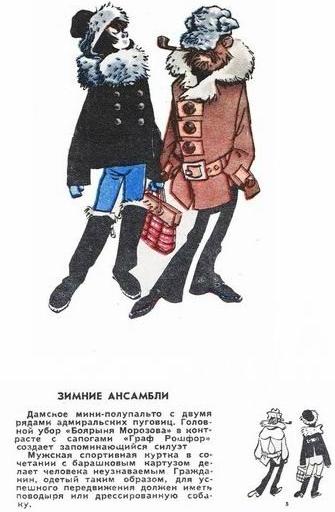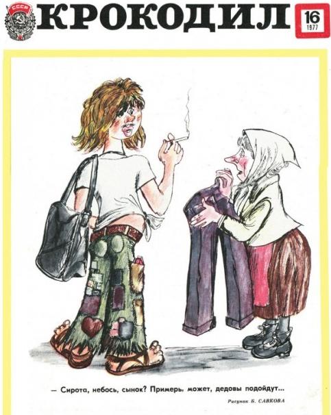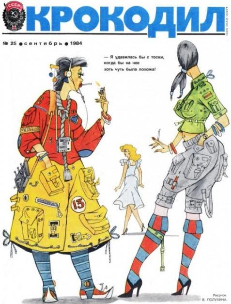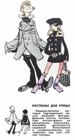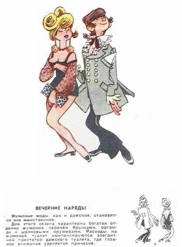В фельетоне также была выведена подруга стиляги по прозвищу Мумочка: «В это время в зале показалась девушка, по виду спорхнувшая с обложки журнала мод». И с этого времени чрезмерное пристрастие молодежи к моде стало высмеиваться в карикатурах